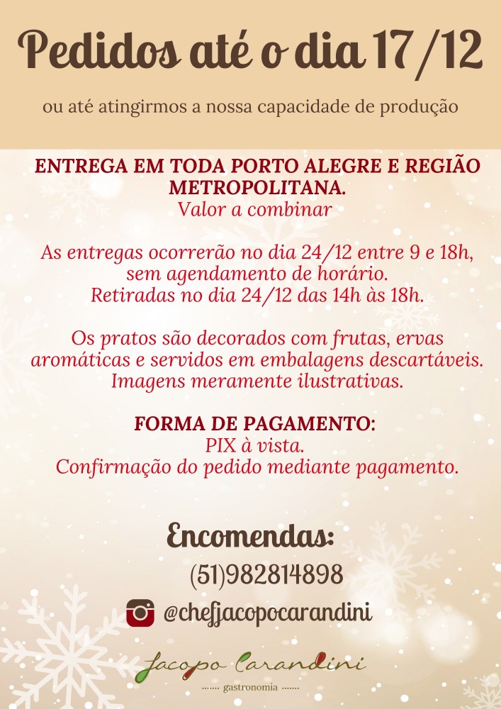 Pedidos até dia 17/12 pelo telefone (51)982814898.